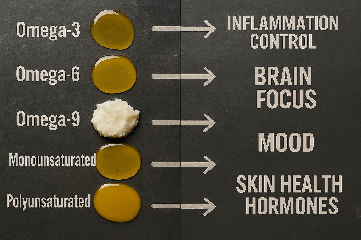 And here’s why it matters: fatty acids aren’t just “fats.” They control inflammation (the root of almost every chronic condition), build your brain and hormones, keep your skin healthy, protect your heart, and power your immune system. When they’re out of balance, inflammation flares — and symptoms follow.