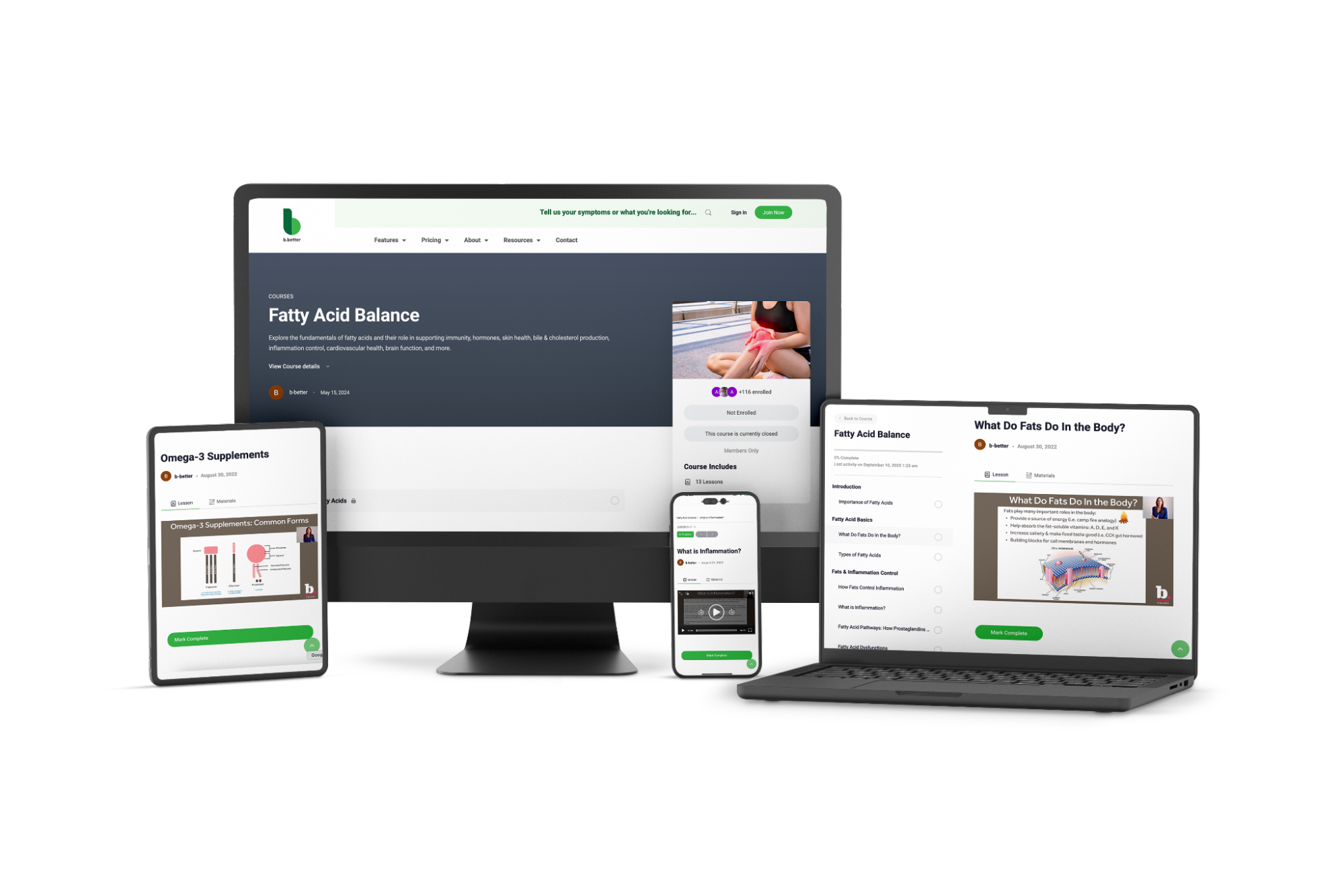- Founder of B Better, a root-cause health education platform delivering courses, programs, expert sessions, and practical protocols to members worldwide.